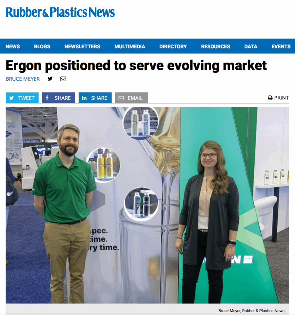 Mary Ann Abney, Ergon’s global technical marketing manager for process oils, and Nick White, Ergon’s Process Oils Inc. vice president of business development, discussed the firm’s RPO offerings during the ACS Rubber Division’s International Elastomer Conference, held recently in Cleveland, where Abney also gave a presentation offering insights into the market. Read more: https://www.rubbernews.com/suppliers/ergon-positioned-serve-evolving-market