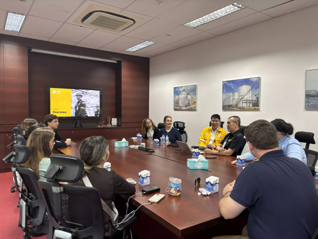 Touring Ergon Asia Amid the excitement of the curious group of students arriving at the U.S. Embassy in Singapore, Phyllicia Ong, Marketing Specialist for Ergon Asia, reflected on their enthusiasm from the moment she and Henry picked them up to head to the facility. “I distinctly remember a student speaking up and sharing what she knew of Ergon’s history and operations,” she said. “That set the tone for the tour. From the start, it was clear the students were eager to understand how a global business like Ergon operates, even thousands of miles from our Mississippi headquarters.” After arriving at Ergon Asia, the students met the terminal team, viewed a mandatory safety video and attended presentations offering a comprehensive overview of operations, logistics and the supply chain processes that connect to our global network.________________